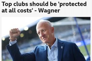 瓦格纳还表示,他会欢迎伯明翰的当地对手在球场上取得成功。他说道:“我尊重球迷享受他们同城对手的痛苦,但如果我要反对我们邻近地区的维拉或狼队,那么我就是在反对伯明翰地区的俱乐部,并降低了伯明翰足球的质量。”