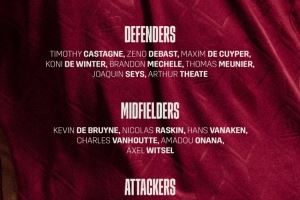 中场:德布劳内(那不勒斯)、拉什金(格拉斯哥流浪者)、瓦纳肯(布鲁日)、范霍特(尼斯)、A-奥纳纳(维拉)、维特塞尔(赫罗纳)